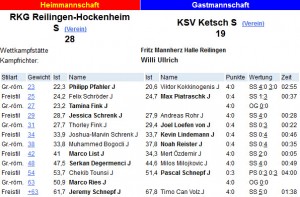 Beim anschließenden Schülerverbandskampf gegen die Schülermannschaft des KSV Ketsch wussten die Schützlinge von Nachwuchstrainer Patrick Seiler dann auch hoch motiviert zu überzeugen. So konnte auch dieser Mannschaftskampf sicher mit 28:19 Punkten zu Gunsten der RKG Schülermannschaft entschieden werden. Damit wurde der 2. Tabellenplatz gefestigt und ein großer Schritt zum Erreichen der Schülerendrunde getan.