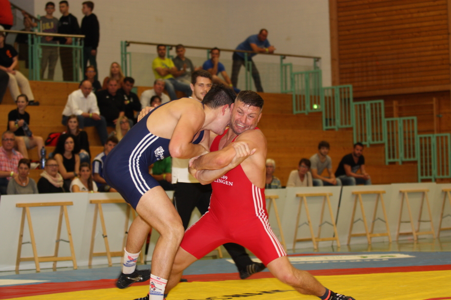 Überraschend aus Sicht der RKG war sicherlich, dass der Trainer der SVG Nieder-Liebersbach, Sven Lay, in der Klasse bis 130kg klassischer Stil selbst auf die Matte ging. Lay hat schon zusammen mit dem RKG Trainer Michael Böh, für den SV Germania Weingarten die Bundesligastiefel geschnürt.