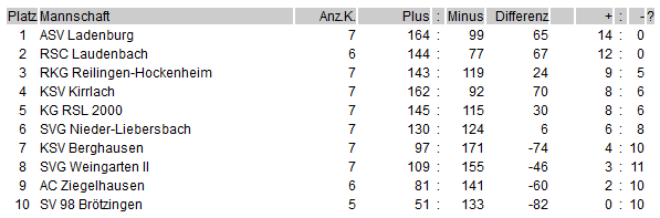 Stenogramm: SVG Weingarten II : RKG Reilingen-Hockenheim 20 : 20