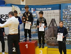 Lenny startete in der leichtesten Gewichtsklasse bis 35kg in der er sich nach drei hochkonzentrierten Kämpfen als Sieger feiern lassen durfte! Gegen den stärksten Kontrahenten aus Südbaden setze er sich mit 5:1 durch und somit war ihm die Goldmedaille sicher! Es scheint als wird er in die Fußstapfen seines Opas und Reilinger Ringeridol Erich Klaus treten!