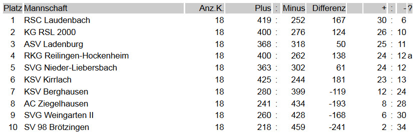 RKG Reilingen-Hockenheim : SVG Nieder-Liebersbach 22 : 12
