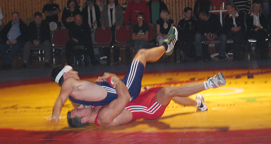 Im Kampf der Klasse bis 96 Kg griechisch-römischer Stil zwischen Erik Offenloch und David Hirsch, sahen die Zuschauer nach einem Armzug von Erik Offenloch und dem Konter von David Hirsch, einen turbulenten Auftakt. Mit einem erneuten Kopfhüftschwung konnte der Ringer der RKG den Germanen aber dann schließlich auf die Schultern zwingen.