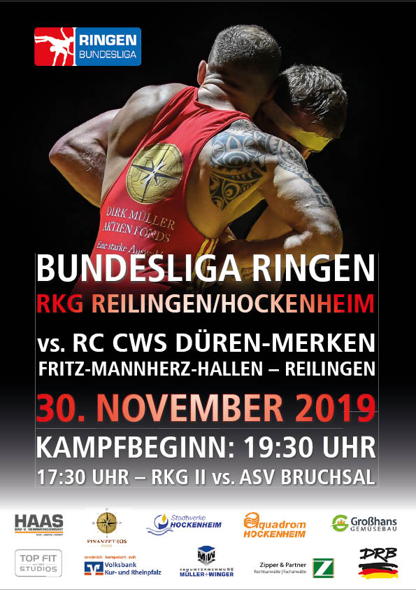 RKG: Wenn nicht jetzt, wann dann? Nachdem die RKG Reilingen/Hockenheim am vergangenen Wochenende ihre weiteste Auswärtsfahrt in der Ringen Bundesliga hinter sich gebracht hat, steht nun der vorletzte Heimkampf ihrer Premierensaison in Deutschlands Oberhaus an. Mit dem RC Merken-Düren kommt der Tabellenvorletzte in die Reilinger Fritz-Mannherz-Halle. Schon im Hinkampf lieferten sich beide Teams ein packendes Duell, bei dem die Ringer aus der Eifel denkbar knapp mit 16:15 ihren bislang einzigen Saisonsieg feiern durften. Für die Ringkampfgemeinschaft stehen am kommenden Samstag alle Weichen auf den ersten Saisonsieg, den das Team von Coach Wolfgang Laier hat in der Rückrunde dank der starken türkischen Neuzugänge um Olympiasieger Taha Akgül ordentlich zugelegt und zwei starke Kämpfe abgeliefert. Die Gäste warten nun schon seit dem letzten Heimkampf gegen die RKG auf ihren zweiten Bundesliga Sieg und konnten zuletzt zweimal nicht mehr als fünf Punkte erringen. Obwohl die aktuelle Formkurve die RKG erstmals als leichten Favoriten in den Kampf schickt, müssen die Reilinger gewarnt sein. Die Staffel von Coach Daniel Anderson wird sicherlich in Bestformation in die Kurpfalz reisen. Mit dem Kroaten Antonio Kamenjasevic (80 Kilo Greco), dem Esten Aimar Andruse (75 Kilo Freistil) und dem Ungar Eric Szilvassy (98/86 Kilo Greco) verfügt der RC über eine starke Ausländer Achse. Außerdem kommt mit Timo Moosmann (71 Kilo Freistil) ein alter Bekannter nach Reilingen, der bereits mit dem KSV Tennenbronn starke Regionalliga Kämpfe in Reilingen abliefern konnte. Für die Ringkampfgemeinschaft steht der Fokus klar auf Sieg, um sich für die starken Leistungen in diesem Jahr endlich zu belohnen. Außerdem wird mit Laura Ferdinand die Mattenrichterin den Kampf leiten, die bereits beim Reilinger Aufstieg in Schriesheim gepfiffen hat. Die Omen stehen also gut für die RKG. Der Kampf beginnt am kommenden Samstag, den 30.11., um 19:30 Uhr in der Reilinger Fritz-Mannherz-Halle. Auch im Vorkampf (17:30 Uhr) darf mit viel Spannung gerechnet werden, wenn der Tabellenvierte der Verbandsliga, der KSV Bruchsal, die formstarke RKG II fordert. Und auch die RKG Schüler empfangen zu ihrem letzten Saisonkampf ab 16:30 Uhr den KSV zum Spitzenduell um den ersten Platz in der Tabelle. hef
