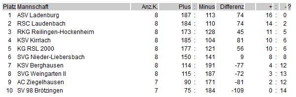 Stenogram: RKG Reilingen-Hockenheim : AC Ziegelhausen 30 : 9
